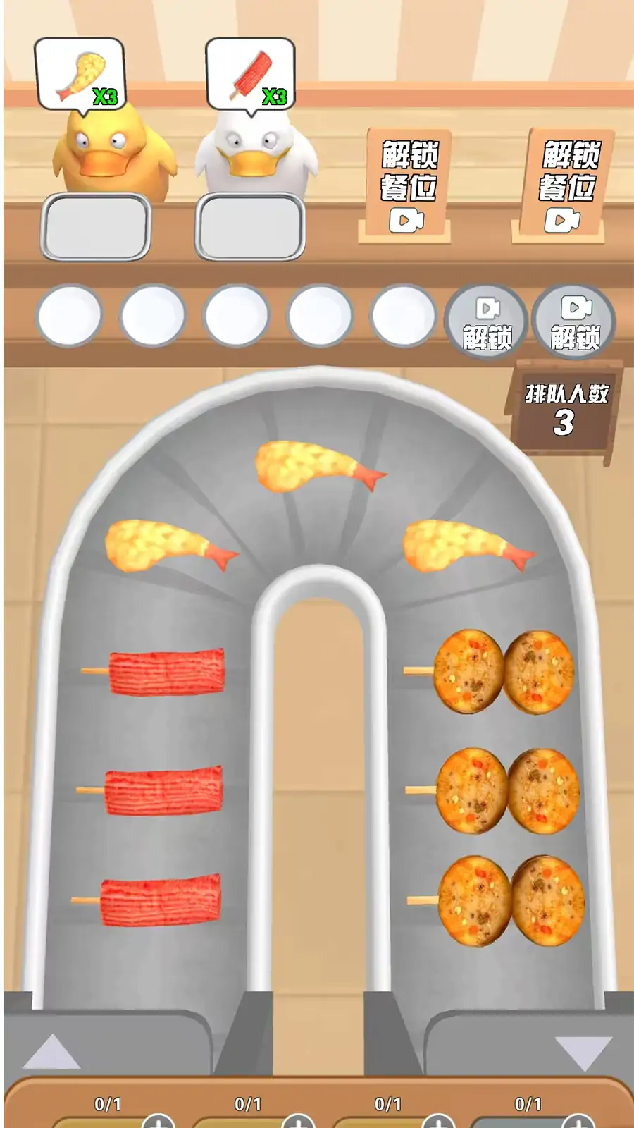 美食er来啦!快把我们的好吃的拿出来招待它们!他们是一群挑剔的美食鸭!只吃自己想吃的,坚决不妥协!而且它们总是一下就要吃三份,如果不按它的要求来,它们会生气的离开哦。快来服务好它们吧,让它们做一只快乐的美食鸭~