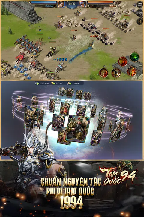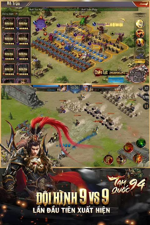 《三国志94-标准三国志9-5-1》 三国志94不愧为策略游戏系列的丰碑。以1994年播出的同名作品改编的电视剧《三国志表情》版为灵感,三国志94再现了曾经的辉煌一幕。 空间承载着远古三国的气息 借用空间,电影《三国演义》中的场景,三国94重现了一个古老的英雄时代:要塞、军营都散发着古老的气息;威武的将军们以凄美、威严、显赫的方式被描绘出来。 9x2阵容首次出现在越南 《三国志94》相比以往和现在的三国志题材游戏最大的亮点和不同之处在于9x2的阵容。第一次可以同时和9名武将出战,任意换位,任意换兵。此外,还可以探查敌方阵型,安排合适的战术。 战斗中多样化的战术能力 Three Kingdoms 94 的独特之处在于它具有高度可定制的战术以及相互对抗的能力。小队可以伤害、防御、buff血量、buff效果. 不仅如此,玩家还可以组合小队来激活超级团队技能。 后宫、妃子、君子 后宫的10位妃子,对于游戏玩家来说,都是风华绝代的佳丽佳人。用黄金宠妃达到生育指数。每次亲密度达到一定程度,激活特殊属性。 (每个元素激活 3 个不同的属性)。出生后可以练招招,随机素质。 轻量化配置,兼容所有机型 拥有精美的图形背景,许多锐利和引人注目的细节和无数吸引人的PVP和PK功能,但游戏大小只有250mb。游戏可在所有操作系统上流畅运行,挑战所有移动设备