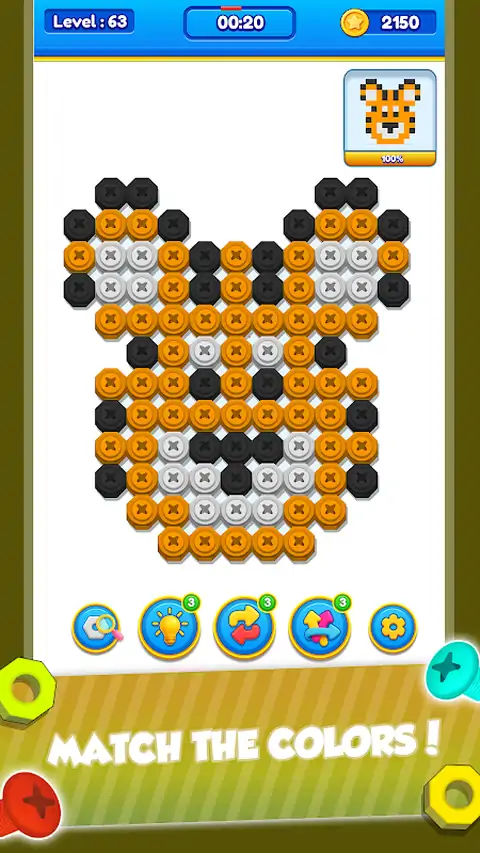 您准备好测试您的脑力并成为螺母和螺栓分类的螺丝大师了吗?螺栓和坚果颜色分类拼图是终极脑力挑战,将测试您的注意力和拼图解决技能。在这款颜色匹配螺丝分类益智游戏中,您的任务是按颜色对螺母和螺栓进行分类,并策略性地对它们进行颜色匹配,以拧出完美的组合。 在具体细节的世界中,每一步都很重要。因此,快速思考,明智地制定策略,并在这个令人上瘾的颜色分类益智螺丝挑战中成为终极螺丝大师!你准备好迎接螺丝挑战了吗?在这个惊心动魄的坚果和螺栓益智冒险中,玩家的任务是在时间用完之前对彩色螺栓进行分类,并将它们与相应的坚果匹配,这是一个有趣的挑战。凭借其简单的点击和移动机制,这款游戏为所有年龄段的玩家提供了引人入胜和精神刺激的体验。 在这款大脑测试益智游戏中测试您的思维能力,将您的认知技能推向极限。凭借其引人入胜的游戏玩法和脑力测试机制,这款颜色分类游戏非常适合颜色分类益智游戏和脑力游戏爱好者。通过简单的点击和移动,有策略地拧开螺母和螺栓。将螺栓和螺母的颜色匹配并拧紧。Bolts & Nuts Color Sort Puzzle 是一款烧脑益智游戏,将测试您的逻辑和空间推理能力。 游戏特色: - 引人入胜的颜色分类拼图:让自己沉浸在一个充满活力的世界中,每个细节都有其独特的颜色,提供视觉上吸引人的体验。 - 脑力提升:通过这款具有挑战性的颜色分类益智游戏,调动您的认知能力并磨砺您的思维。 - 策略性游戏玩法:在您制定策略并仔细计划您的移动以将螺栓与相应的螺母匹配时,测试您解决问题的技能。 - 训练您的大脑:在每个关卡中,您将提高您的专注力和逻辑思维能力。 - 时间压力:努力在时间用完之前完成每个关卡,感受与时间赛跑的快感,为游戏增添额外的兴奋感。 - 点击并移动机制:用手指点击并将螺栓移向其匹配的颜色坚果。 - 随着时间的流逝,快速思考并精确移动。 怎么玩: - 点击并将螺栓移向相同颜色的坚果。 - 在时间用完之前快速思考并仔细采取行动。 - 有策略地将螺栓堆叠到相应的螺母上以完成每个级别。 - 计划并使用您的脑力来克服具有挑战性的难题。 - 获得更多奖励以解锁步数限制。 -在游戏中不断进步,解锁新关卡,成为终极坚果分类大师。 准备好使用螺栓和坚果颜色分类拼图,深入探索螺丝分类、脑力和战略性谜题解决的世界。训练您的大脑,组织具体细节,在您完成这款迷人游戏的过程中不要搞砸。立即下载,让您的脑力接受终极考验