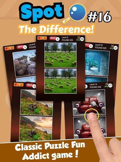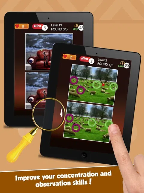 大家来找茬 - 有什么区别。经典有趣的益智游戏。 提高你的注意力和观察力,同时播放。 邀请你的家人和朋友也玩这个有趣的灯谜炫耀你是如何的酷和智能。 尝试设置新的更高的水平吧! *下载并享受!* 大家来找茬 - 有什么区别是免费的有趣的游戏,玩家必须寻找,发现现场照片之间的差异5, 比更有趣,玩家将获得好处锻炼大脑,眼睛和观察能力 大家来找茬 - 提供娱乐有什么区别。人们不仅对孩子,但还年轻,老了所有的性别已享受现场世代差异的游戏。 还可以自行播放机上播放或与朋友,恋人,家人发挥,以获得更多的关系,即使时间杀! 这是你爱的经典游戏! * 怎么玩? * 1.查找和现货5差异为完成等级。 2. 5提示,5个跳过,获取有关启动游戏。 3. 1在每个级别的结尾提示。 4.没有时间限制,但如果错点9分以上=输! 5.当你被卡住!以提示为提高差异的数量和跳过跳过级。 6.空的提示?只要问有人要说话呢!这是交好某一个伟大的方式! * 特征 * - 免费! - 美丽的高清图片。 - 漂亮的用户界面。 - 上瘾的游戏这是每个人的乐趣! - 54级水平。 - 提示你被卡住时! 5个提示,5个跳过,获取有关启动游戏。 你可以找到所有的照片全部5个区别是什么? 玩大家来找茬 - 有什么区别吧