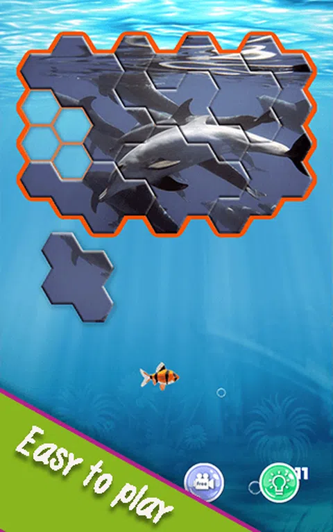 六边形方块拼图是一款超棒的拼图益智游戏,具有大量的拼图关卡,只需将六边形方块填满即可填补空白并上升到下一个级别。扩展您的六边形方块拼图技能,让自己进入有趣的模式。你会发现很多很棒的鲨鱼、章鱼、海豹和珊瑚六边形拼图图片,你会喜欢的。您可以随时随地免费玩这款六边形方块益智游戏,因为它没有时间限制,也不需要WiFi。大量独特的六边形方块拼图关卡,让你不再无聊。 玩六边形方块拼图,通过各种鱼类、鲨鱼、章鱼、海豹和珊瑚的水下图片获得终极娱乐。所有六边形方块级别都经过精心设计,为您的孩子提供终极思维和乐趣。 如何玩六边形方块游戏? - 只需拖动给定的六边形方块。 - 将碎片放入六边形拼图板。 -完成水下拼图图片。 没有时间限制!一款有趣而放松的六边形拼图游戏。以您自己的速度玩经典拼图!您可以通过使用提示获得帮助! 六边形方块益智游戏的特点: ☆ 可爱的水下图片。 ☆ 独特的拼图关卡。 ☆ 优雅的设计。 ☆ 简单易玩的拼图游戏,但关卡可能非常棘手! ☆ 棘手的关卡,让您的大脑整天运转! ☆ 每次都有愉快的游戏! ☆ 平静的大自然和超棒的海洋生物拼图图片。 ☆ 令人惊叹的高清图形,尽享乐趣! ☆ 免费游戏,您可以在没有WiFi的情况下玩六边形拼图! 你喜欢海底世界吗?太棒了