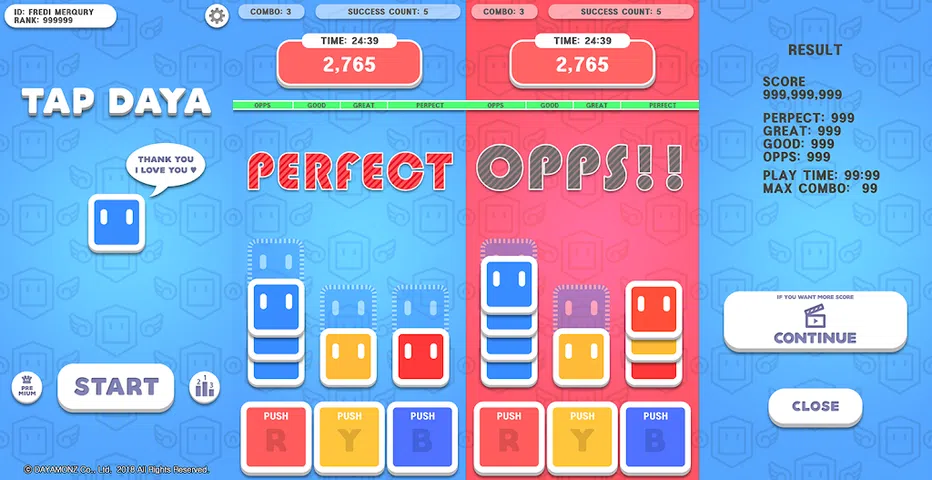 > 轻按-轻按 < ◆ 点击大雅 ◆ 《 简单易学。 尽可能快地制作三个不同颜色的立方体塔。 与你的朋友竞争并获得比其他玩家更高的分数。 ◆ 怎么玩? ◆ 要获得高分,请尽快将其堆叠在空块空间中 30 秒