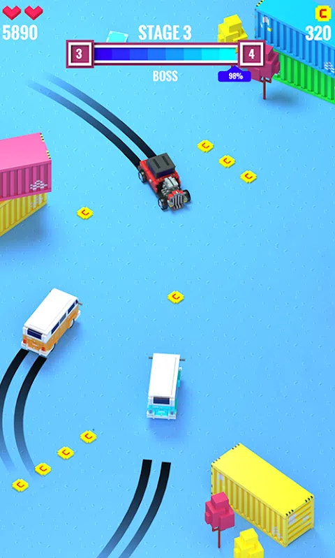 通过障碍物、疯狂的货车和警车撞上、逃脱和驾驶。找到秘密宝箱并解锁新车。 特征: *简单且令人上瘾的游戏 *解锁汽车 如何: * 按住左侧或右侧来驾驶汽车。 * 避免驶入任何障碍物