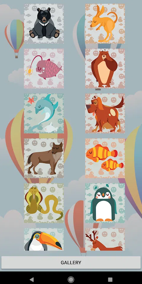 这是儿童应用程序,供孩子们玩带有动物和鸟类图像的经典幻灯片游戏
