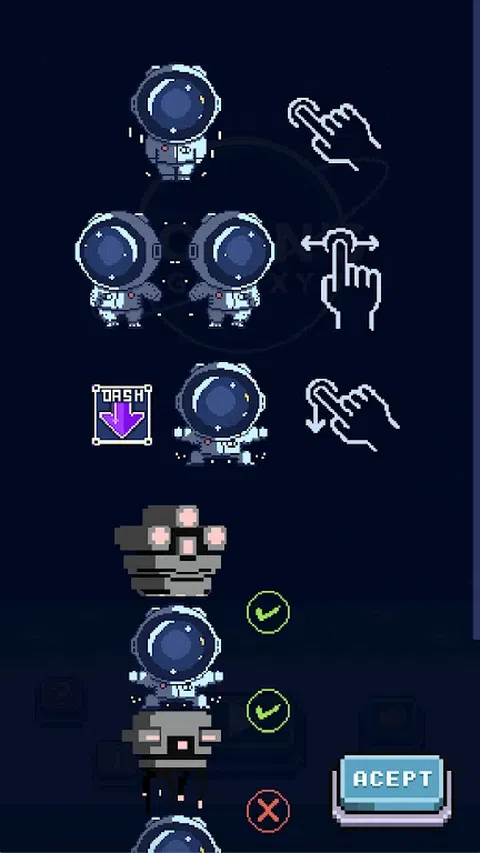 诺兰的银河是一款具有像素艺术视觉效果的 2D 街机游戏,您可以在其中扮演执行太空任务的宇航员。你的目标是在穿越宇宙时躲避机器人,努力达到最高距离并打破排行榜记录,以拯救你漂浮的哈巴狗! 特点: - 单手乐趣:通过简单的单手控制享受有趣和具有挑战性的游戏。 - 迷人的像素艺术:游戏具有令人愉快且丰富多彩的像素艺术。 - 全球排行榜:与世界各地的玩家竞争,力争榜首。 - 直观的控件:易于使用的控件使所有人都可以玩游戏。 - 免费畅玩:免费下载并畅玩《诺兰银河》! 你准备好测试你的反应能力并超越最好的玩家了吗?立即下载诺兰银河