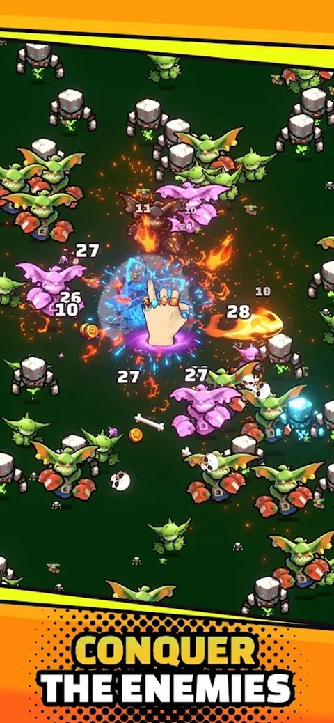 《Rings of Survival》是一款动感十足的手机游戏,您可以控制一只手,挥舞强大的戒指作为武器。每个戒指释放不同的元素 - 火、冰、雷和黑暗魔法。 从岩石土傀儡到淘气的地精,一路杀出一波又一波的敌人。 装备强大的元素戒指,释放毁灭性的攻击,称霸战场