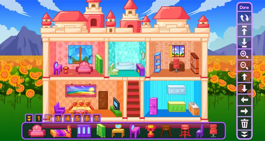 为女孩打扮公主洋娃娃屋,这是一款新颖的公主洋娃娃屋布置游戏。在游戏中,公主的娃娃屋具有城堡般的外观,并且高端的气氛美极了!室内分布也很独特,客厅,厨房,卧室和淋浴室可以单独设计。游戏中还有漂亮的床,沙发,电视,书柜和其他家具。快来利用您的天才来设计一个美丽的梦想娃娃屋。在游戏中,设计作品也可以本地存储,以便再次进行设计和欣赏