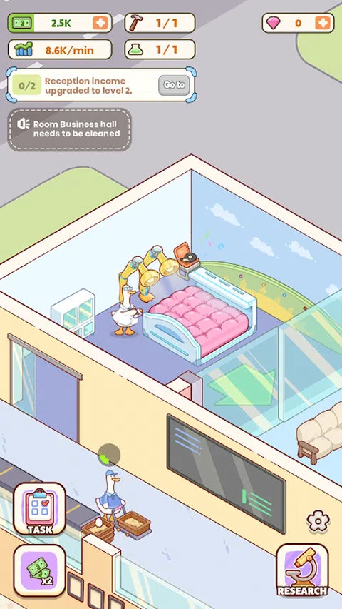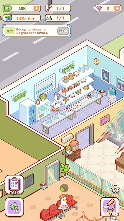 这是一款模拟经营休闲游戏,游戏中有不同的房间和设施,包括接待大厅、分类传送带、孵化室等。接待大厅将接收鸭妈妈或鸭爸爸存入的鸭蛋,传送带将鸭蛋运送到后面的孵化室。过不了多久,蛋就会孵化成可爱的小鸭子,这一切都由鸭子工作人员完成。你的任务是建造和升级这些设施,提高鸭子员工的工作速度。 游戏玩法: 在游戏中,我们需要赚取货币来管理鸭蛋孵化中心。我们可以获得的货币资源包括: 1. 钻石:可用于跳过建筑升级时间或建造时间。 2.金钱:点击即可升级设施。 获取方法很简单。如果你想赚钱,可以参考以下方法: 1.鸭子员工完成一个工作程序后可以赚钱。 2.完成指定任务也可以获得金钱。但是,当游戏中的货币存量达到上限时,您需要升级金库以获得更大的存量。 如果你想获得钻石,可以参考以下方法: 1.完成指定任务或达到一定数量的任务也可以获得钻石。它们可以在任务奖励和关卡奖励中获得。 获得金钱后,我们可以升级孵化中心的设施。升级设施可以帮助你赚更多的钱或提高鸭子的工作效率。 快来体验这款充满可爱鸭子的模拟经营游戏,赚取更多的钱让你的鸭蛋孵化中心更加繁荣