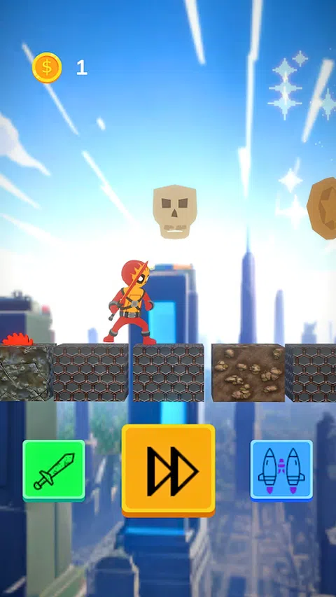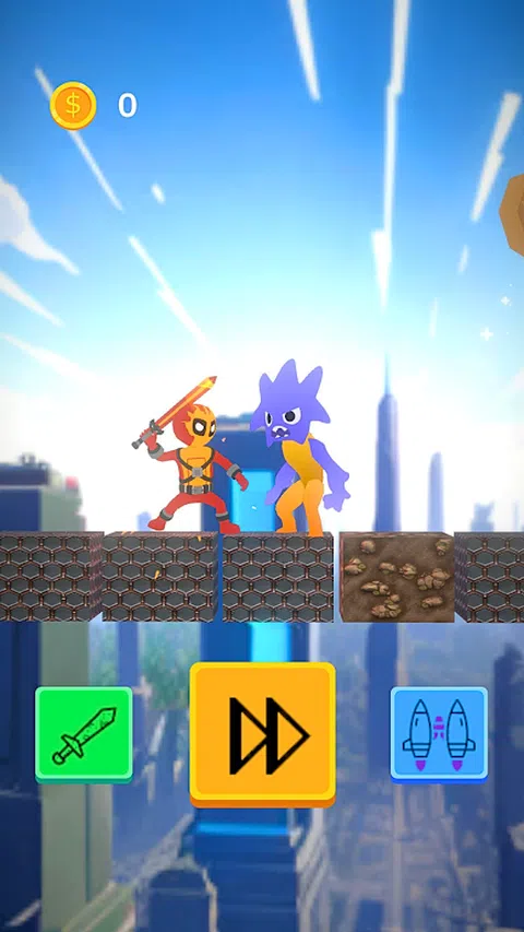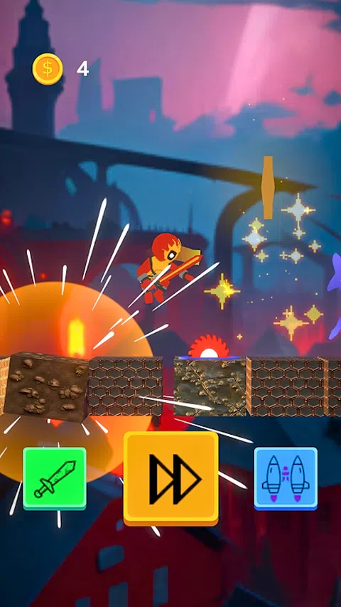 拯救城市作为疯狂的家伙 总督障碍 用剑与怪物战斗 使用喷气背包跳得很高 收集硬币 移动和跳跃 超棒的图形
