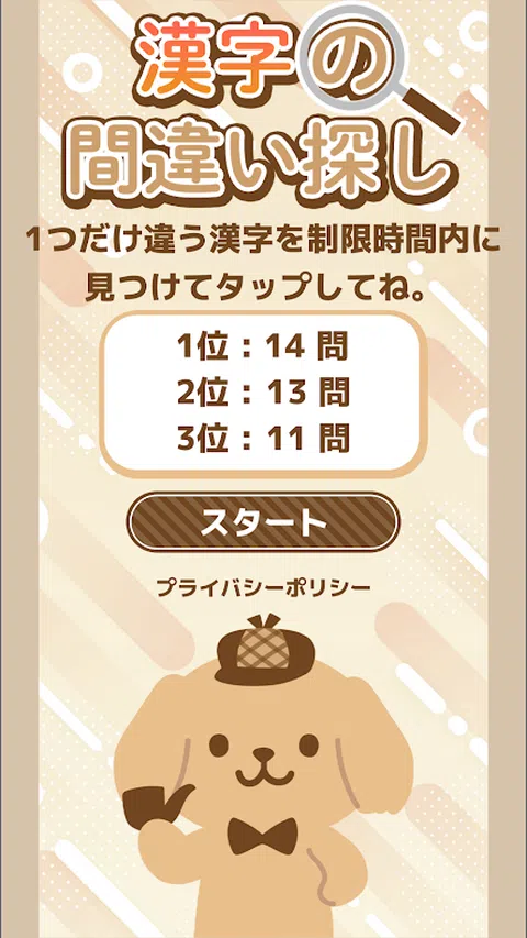 “Genkidama!基于 SDG 的治疗游戏项目”为患有发育障碍(自闭症、阿斯伯格综合症、注意力缺陷/多动障碍(ADHD)、学习障碍和抽动障碍)的儿童开发治疗和教育游戏应用程序。 这是一款专为残疾儿童设计的简单游戏应用程序。 ◆“大脑训练:找到不同的汉字!”的规则超级简单◆ 一个简单的游戏,您可以在屏幕上显示的相同汉字中搜索不同的汉字! 游戏开始时,在屏幕上显示的相同汉字中找出一个感觉不同的汉字。 挖掘那种不一样的感觉。 如果您点击正确的汉字,问题就会解决,您将获得 1 分。 继续剩下的时间,进入下一个问题。 如果您点击了错误的答案,时间限制将减少 10 秒,正确的汉字的颜色将会改变,然后您将进入下一个问题。 如果你的时间用完了,游戏就会结束,你在时间内找到的数字就是你的分数。 集中注意力,寻找多种不同的感觉,争取最好的记录