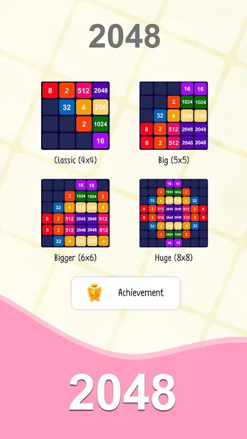 2048 应用程序是一款有趣、令人上瘾且非常简单的益智游戏。 连接数字并获得 2048 磁贴! 2048 年最小尺寸的应用程序! * 特点 * - 赢得 2048 格后,您可以进一步挑战 4096、8192! - 经典(4x4)棋盘。 - 大(5x5)棋盘。 - 更大的(6x6)棋盘。 - Hude (8x8) 棋盘。 - 进程和高分将自动保存。 - 美丽而简单的用户界面,流畅的动画。 - 支持包括平板电脑在内的所有设备。 * 怎么玩? 滑动(向上、向下、向左、向右)以移动图块。当两个具有相同数字的图块接触时, 它们合而为一! 滑动单元格进行合并,2+2=4, 4+4=8, 8+8=16, 16+16=32 . 当创建 2048 块时,你赢了!