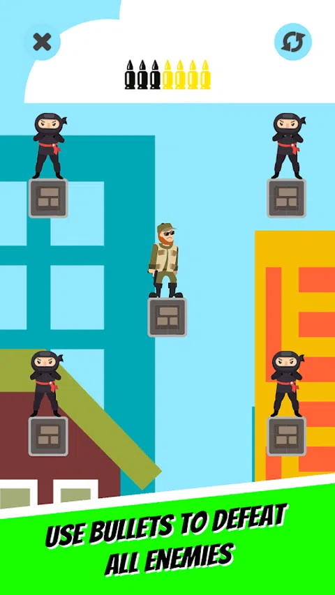 轻松上手休闲减压 每个级别都会出现新的挑战 从易到难,突破极限 用最少的子弹消灭所有敌人