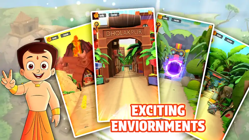 准备好与 Chhota Bheem: Adventure Run 一起进行惊心动魄的冒险吧,这是一款终极无尽的奔跑者游戏,拥有每个人最喜欢的动画英雄!加入 Chhota Bheem 和他的朋友们,如 Chutki、Raju、Jaggu 和 Kalia,他们在充满活力的风景中冲刺,躲避障碍,沿途收集宝藏。 在这款与 Green Gold Animation 合作开发的动作游戏中,您将体验与 Chhota Bheem 本人和他心爱的同伴一起奔跑的快感。凭借简单的控制和令人上瘾的游戏玩法,所有年龄段的玩家都可以在从茂密的森林到古老的寺庙的各种环境中航行时享受数小时的刺激。 随着你的进步,解锁道具和升级,以增强 Chhota Bheem 的能力,并帮助他克服最艰难的挑战。挑战你的朋友,超越你的高分,成为终极冒险家! 凭借令人惊叹的视觉效果、生动的动画和 Chhota Bheem 宇宙中真实的声音,Adventure Run 以前所未有的方式将整个 Chhota Bheem 家族带入生活。立即加入乐趣,与 Chhota Bheem、Chutki、Raju、Jaggu、Kalia 和其他人一起踏上难忘的旅程! 特点: - 与 Chhota Bheem 和他的朋友一起奔跑、跳跃和滑行,享受令人兴奋的无尽奔跑体验。 - 探索各种环境,从繁华的村庄到神秘的洞穴。 - 收集金币和道具以解锁升级并提高您的表现。 - 挑战朋友,争夺排行榜上的最高分。 - 沉浸在 Chhota Bheem 宇宙中令人惊叹的图形和真实的音效中。 - 不要错过激动人心的体验 - 立即下载 Chhota Bheem: Adventure Run,开始你的史诗之旅
