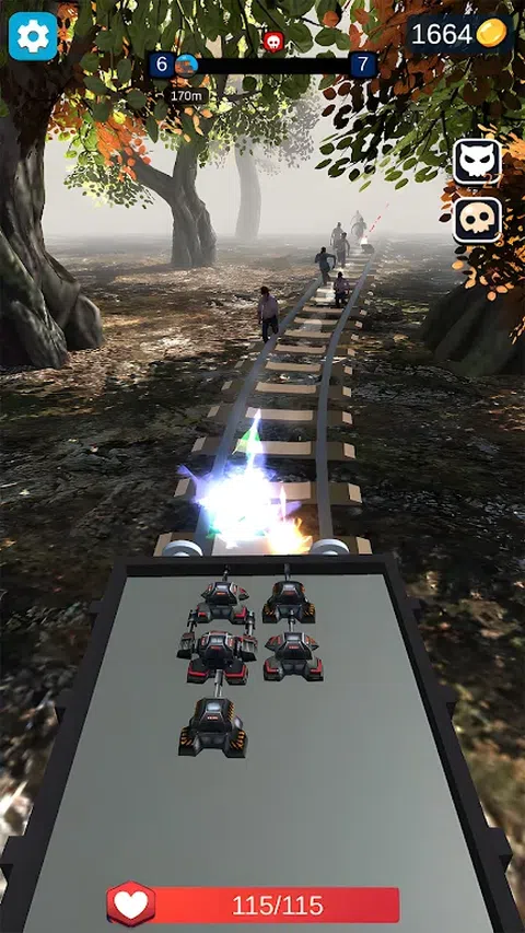 射击僵尸游戏,组合武器,两种相同级别的武器可以组合成更高的武器,通过火车僵尸逃脱生存