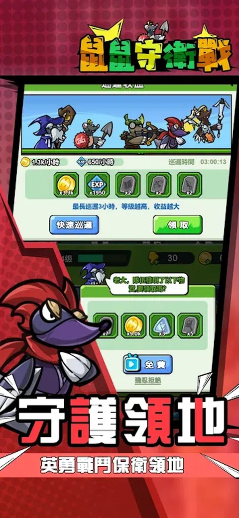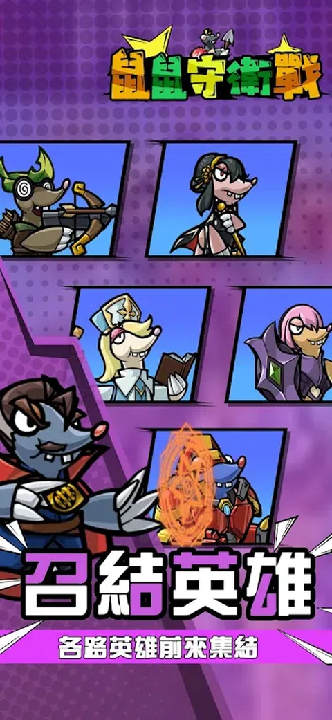 Hi 大家好,很高兴能为各位玩家带来这款《鼠鼠守卫战》休闲游戏,我们得游戏由五个不同职业组成,分别是战士、法师、刺客、治疗、弓箭手,合理搭配阵容是您通关得秘诀 【游戏特色】 -战士不只是前排扛伤得角色,他还能成为输出战士 -法师可以纯输出法师,当然也可以选择带AOC类型得,又或者是带有控制技能得法师来扭转战局 -弓箭手有单体攻击、攻击速度和群体攻击几个分支 -刺客有单体攻击、爆发、debuff类型的专职类型 -治疗师可以单体快速加血,也可以群组缓慢,或单体持续加血 具体如何搭配,大家需要在游戏内自行探索。 对局内会掉落大量神像,神像可以选择出战英雄;同时也有大量五彩石掉落,五彩石可以升级英雄技能和选择英雄分支。 不同对局中可以合理安排出赛英雄,巧妙的搭配往往是致胜关键