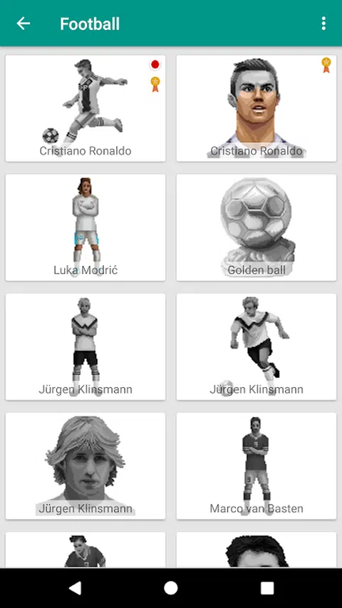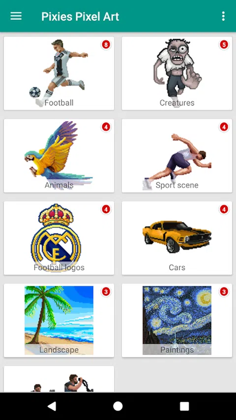 享受美好的时光,按数字标识为我们惊人的像素艺术作品涂色,祝你玩得开心。 探索我们的按类别划分的精美高品质像素艺术作品,包括足球运动员,足球标志,运动场景,动物,生物,僵尸,名车,名胜,名画,等等. 此应用程序将帮助您在没有压力的情况下按像素快速绘制颜色。 按像素绘制非常容易: 1.选择要着色的像素图像。 2.放大像素,直到出现数字。 3.在调色板中选择一种颜色并为匹配的数字着色。 4.使用长按可以更快地着色。 主要特点: - 按类别划分的像素艺术作品: 足球运动员 足球徽标 运动场景 动物 生物 僵尸 名车 名胜 名画 等等. - 魔棒着色工具,可以更快地绘制艺术品 - 与朋友分享您的作品 - 更新频繁,提供新的精美像素艺术作品 像素艺术作品涂色从未如此有趣!请享受美好时光