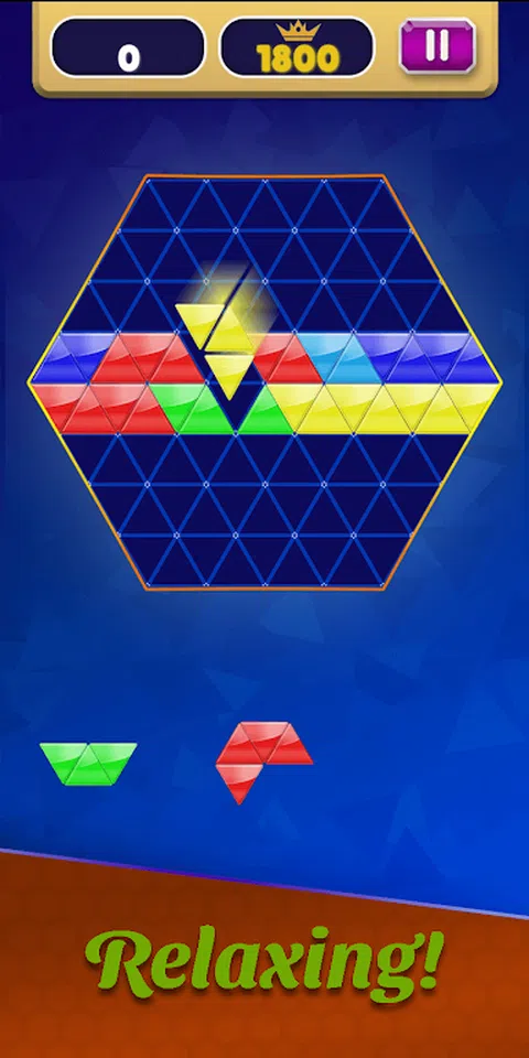 Block Triangle Puzzle 是一款出色的六边形益智游戏,只需将六边形方块填满空白并完成一条线以将其摧毁并获得分数。尝试一次摧毁更多线以获得组合奖励。扩展您的六边形方块拼图技能,让自己进入有趣的模式。你会喜欢的。您可以随时随地免费玩这款六边形方块益智游戏,因为它没有时间限制,也不需要 WiFi。 - 玩六边形方块拼图,获得终极娱乐。 -Block hexa 将为您的大脑提供终极思考和乐趣。 如何玩积木三角形拼图? - 只需拖动给定的六边形方块。 - 将碎片放入六边形拼图板。 - 完成整行以摧毁它并获得分数。 - 通过一次摧毁更多的线条获得奖励。 - 尝试获得高分。 没有时间限制!一个有趣而放松的三角形拼图游戏。以自己的速度玩经典拼图