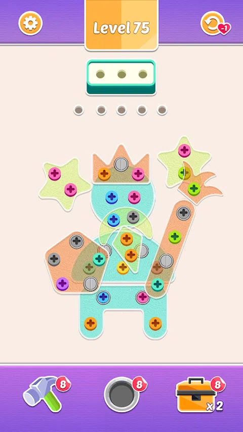 欢迎来到 Nuts Jam:物理益智游戏 - 终极测试您的问题解决能力和创造力! 潜入一个丰富多彩且充满挑战的世界,其中的坚果和螺栓纠缠在充满活力的果酱中,等待您解开它们。Nuts Jam:物理益智游戏是一种独特的益智体验,它结合了令人惊叹的 3D 图形、引人入胜的游戏玩法和巧妙的设计,可带来数小时的乐趣和脑力锻炼。 在《Nuts Jam:物理益智游戏》中,您的目标是匹配并拧紧相同颜色的螺母和螺栓,在错综复杂的果酱中导航。每个级别都会呈现一个新的难题,需要战略思维和耐心才能解决。直观的控制和逼真的物理效果带来令人满意的身临其境的体验。 Nuts Jam:物理益智游戏有数百个关卡可供探索,定期更新会带来新的挑战,让您保持参与和娱乐。无论您是经验丰富的益智游戏爱好者,还是寻求轻松消遣的休闲玩家,这款游戏都能满足每个人的需求。 主要特点: 具有挑战性的谜题:数百个难度不断增加的关卡。 令人惊叹的 3D 图形:生动多彩的视觉效果,让游戏栩栩如生。 直观的控件:易于学习的控件,使游戏过程流畅而愉快。 定期更新:定期添加新关卡和挑战,让游戏保持新鲜感。 你能理清所有的细节并解决每个谜题吗?凭借其迷人的图形、舒缓的音乐和令人上瘾的游戏玩法,《Nuts Jam:物理益智游戏》将为所有年龄段的玩家带来无尽的娱乐。立即下载并开始您的解谜冒险