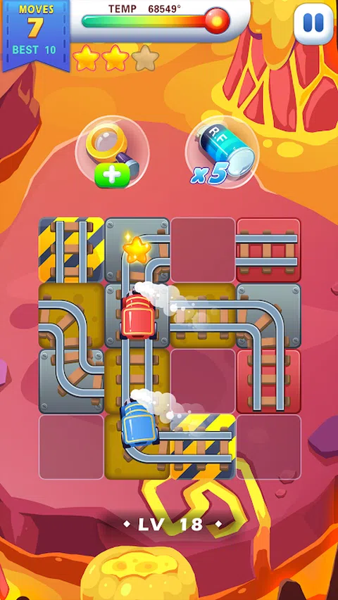 Train Puzzle-是一个新的有趣的铁路拼图解谜游戏。 通过连接铁路和建立安全的方式使铁路到达火车站,解决具有挑战性和独特的难题。改善机车并增加货车(用于货物或乘客)和金库,以便在铁路上尽可能多地获得金币。尽可能快地做到或火车会崩溃!这款管道工风格的游戏融合了运输黄金的老火车的西方美学与流动拼图。的管道连接游戏,让你的大脑锐化! 火车拼图是一款真正放松的铁路拼图游戏,没有生活模式。你想玩多少就玩多少!移动不受限制,如果棋盘上没有适合的棋子,只需按洗牌按钮,就会出现新的轨道。用数小时的管道连接挤压你的大脑,明智地拖动火车轨道!小心选择合适的瓷砖来组装铁路道路,让火车安全到达车站!你能成为狂野西部的铁路大亨吗? 试着用所有的铁轨来解决谜题,以获得最大的分数,并在时间结束之前到达火车站以获得奖金。 游戏特色: 关卡丰富,让人欲罢不能。一共有300多个关卡,越到后面难度会越到哦。 地形丰富,色彩绚丽多彩。旅途是孤独而寂寞的,丰富的场景设计让你忘了旅途的忧伤。 游戏操作简单却难以控制,却很考验脑力。 不过注意千万不要翻车啦