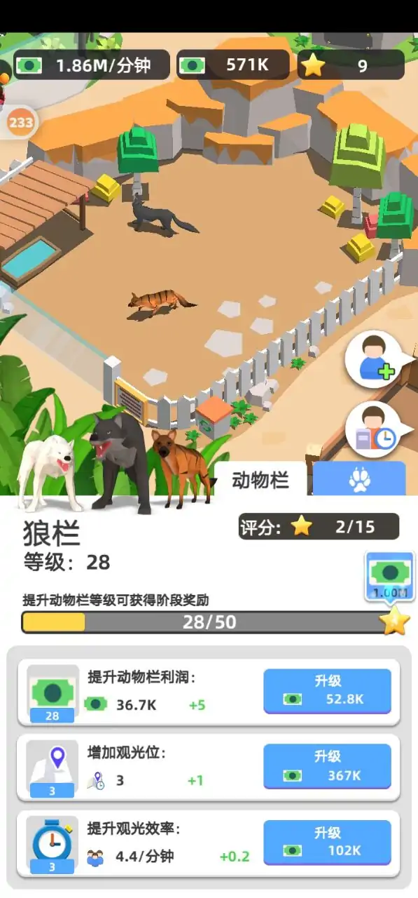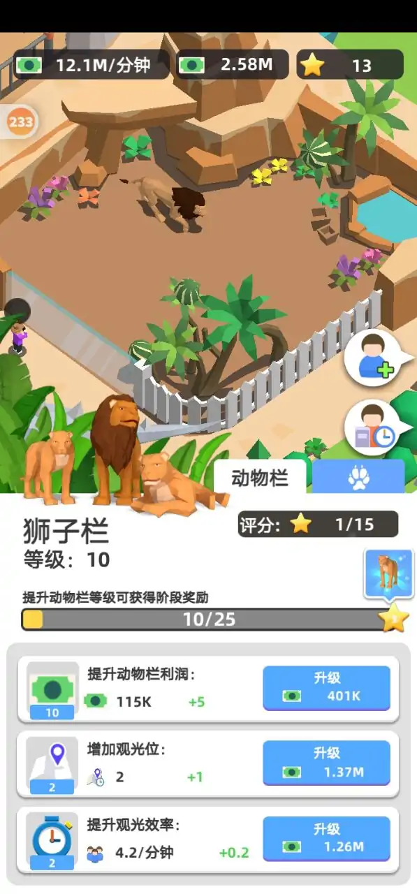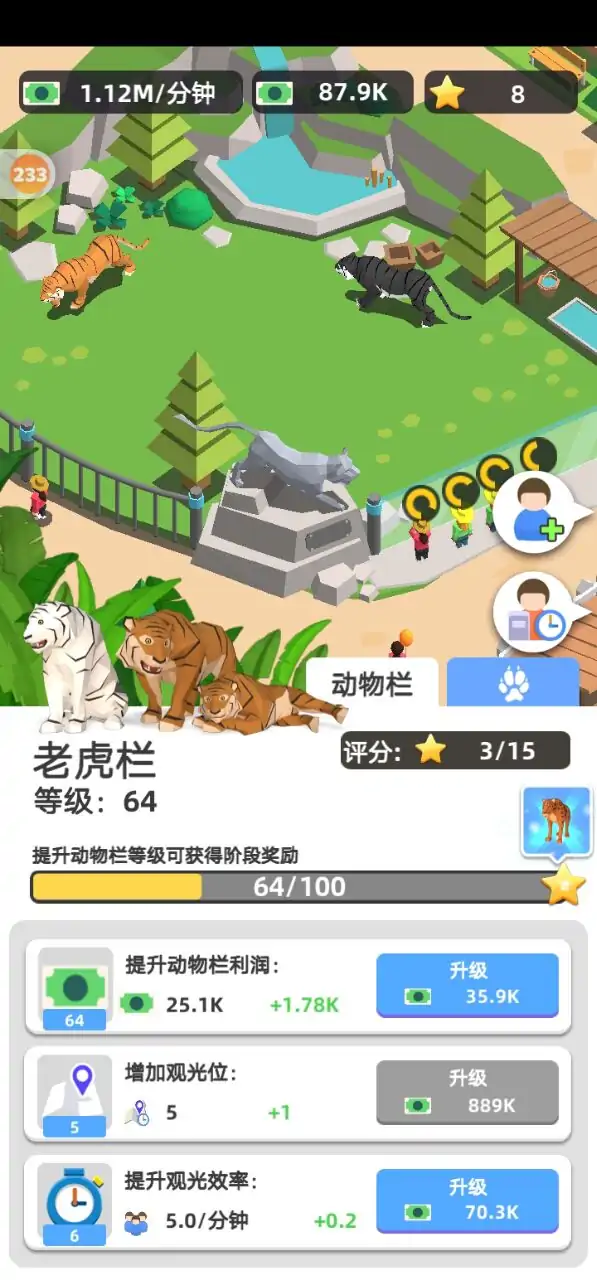 你想拥有神奇的动物吗? 你想成为动物园大亨吗? 经营你的闲置动物园获得资金,收集动物建立你自己的动物王国,快来加入我们吧! 扩大你的停车场来吸引更多的游客,更多的汽车和游客会给你带来更多的资金! 售票处是您动物园的重要收入来源之一,它将为您带来第一桶金!更多的售票处将大大提高您的工作效率! 从一个小动物园开始,然后你需要扩大到一个更大的动物园。为野兽、恐龙、草食动物和鸟类建造动物围栏,为游客提供更多精彩的动物! 如果你喜欢游手好闲,游手好闲的动物园大亨会为你提供更好的游戏体验。游手好闲的动物园大亨更容易控制,即使你离线也能给你带来更多的收入。随时打开它,你会得到更多的乐趣!