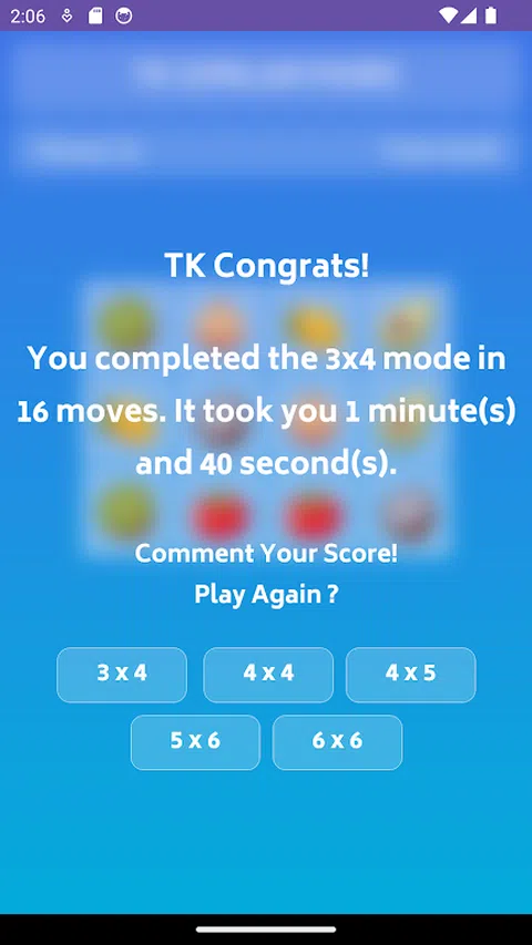 相似对有 5 种游戏选项供玩家选择:3x4、4x4、4x5、5x6、6x6