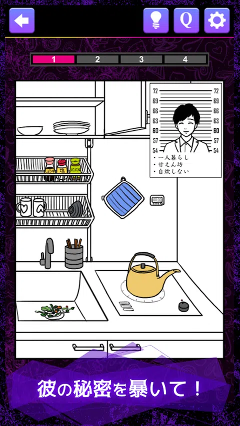 ● 如何发现作弊 Ⅰ、先查考题内容 二、看图找适用的地方 Ⅲ、点击你认为是这里的地方 Ⅳ 重复正确答案,查出婚外情! ● 提示和问题解答 如果这没有帮助,请查看提示。 答案完全剧透,请系统使用 ● 推荐使用场景 ・当你在空闲时间无法帮助它时! ・从学习中休息一下! ・通勤期间!