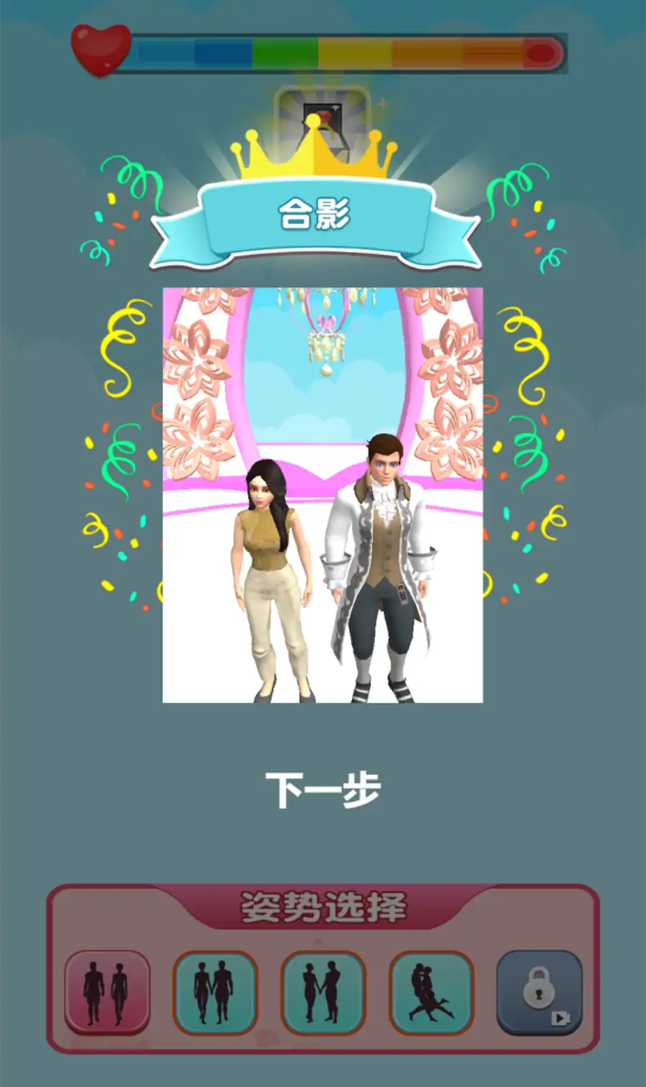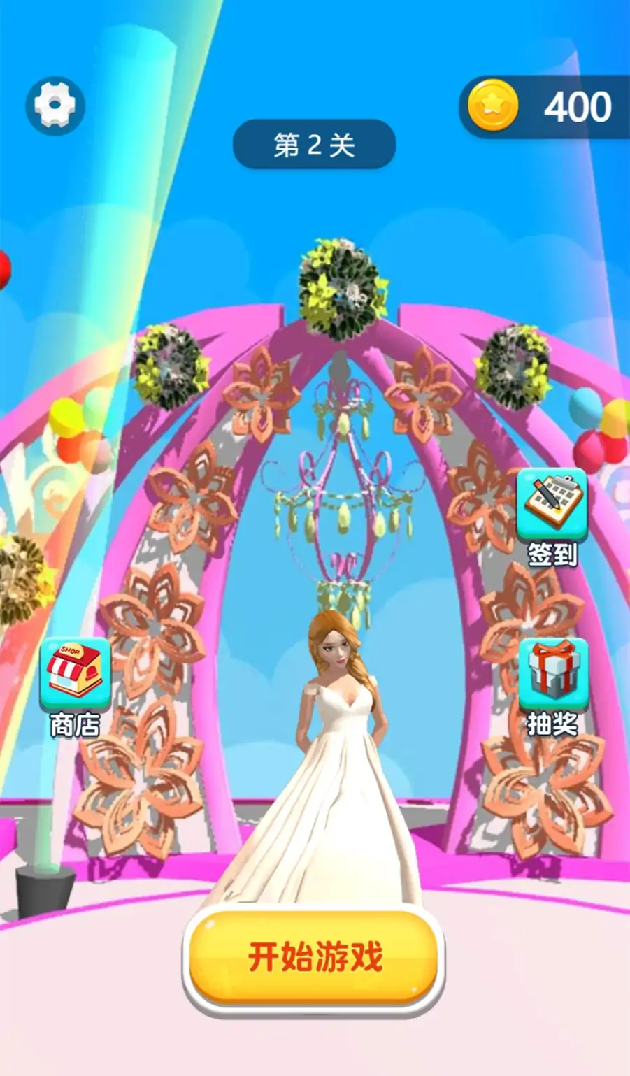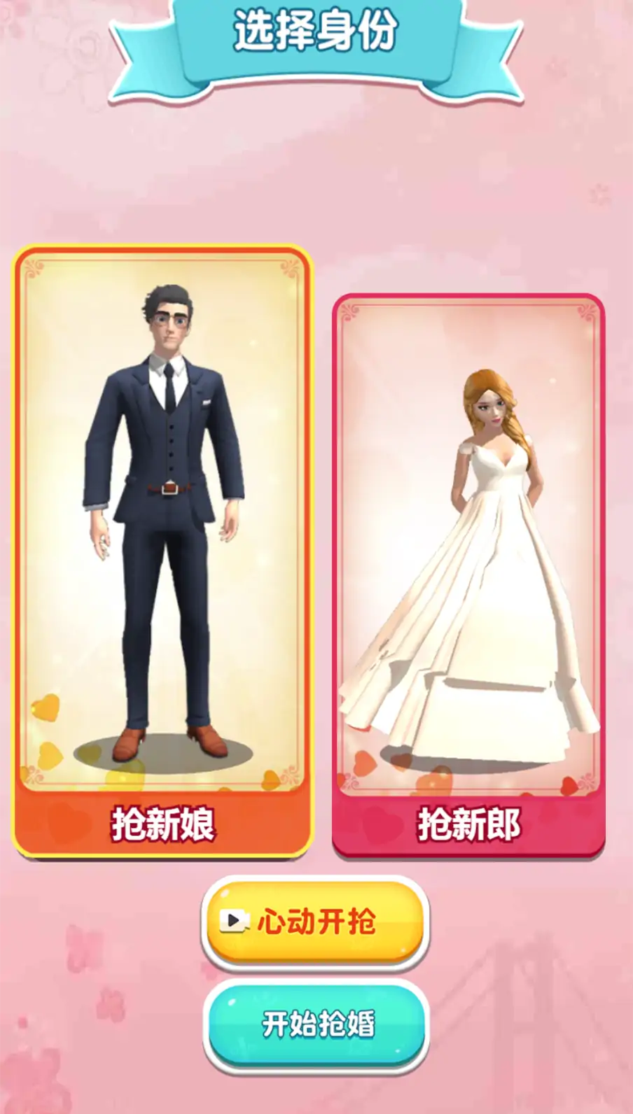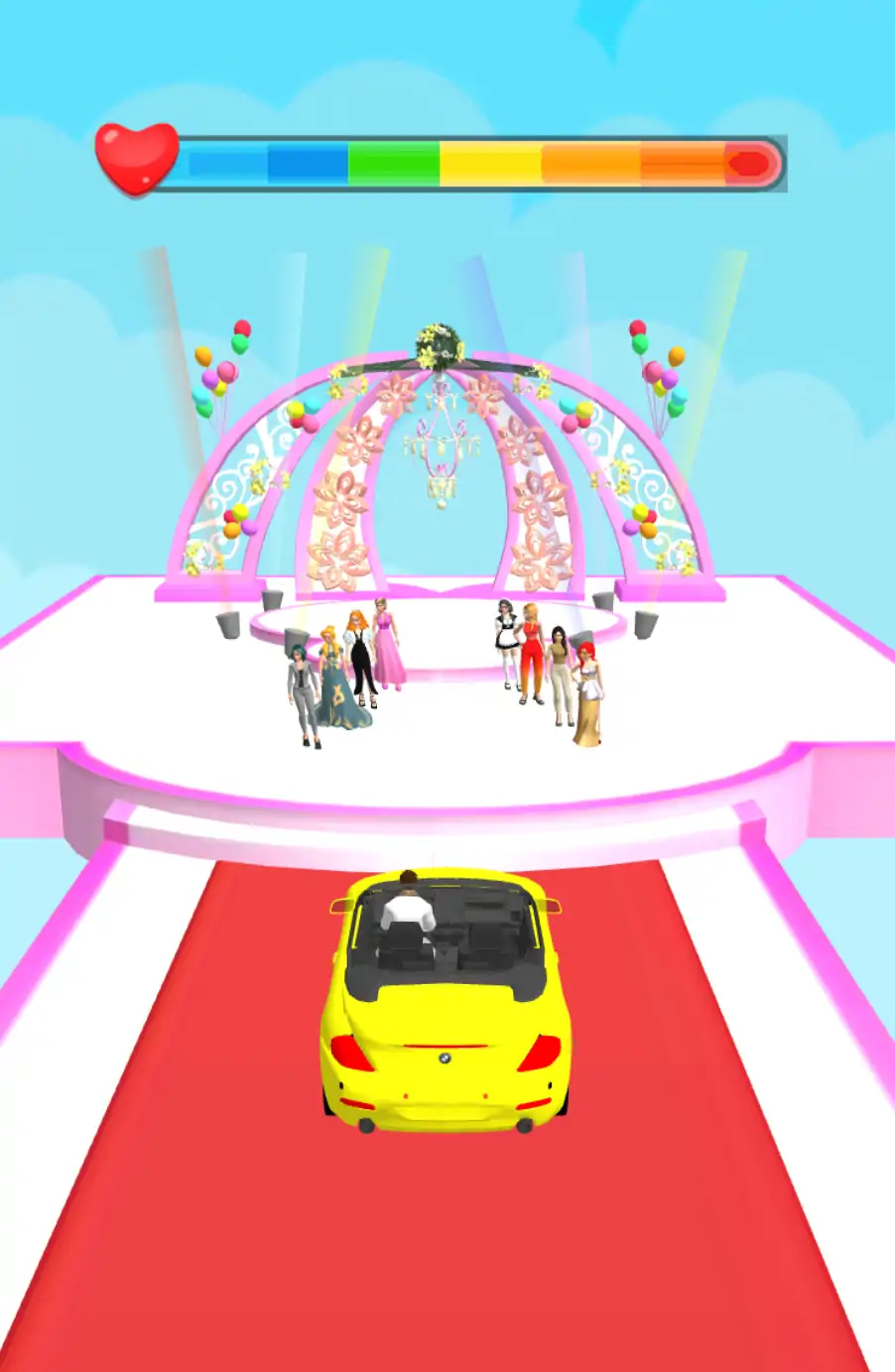 这是一款非常好玩的跑酷闯关类游戏,游戏采用卡通的画风。玩家在游戏开始前可以自由选择成为新郎或是新娘,操控角色去争夺唯一的伴侣。在跑过红毯迎接到心爱之人的路上会有许多竞争对手前来阻拦。我们需要提升自己的实力和魅力将他们统统击败,成功到达终点和对象来举行一场盛大的婚礼!