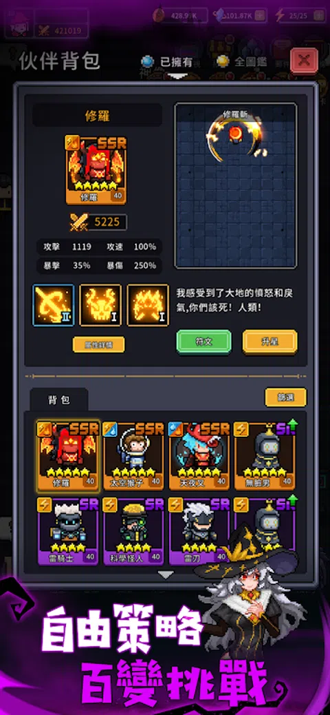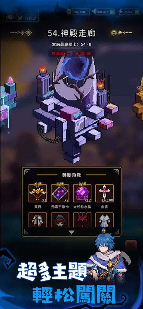角色扮演?飞行射击?放置挂机? Rogue-like? 无需纠结,带上你的英雄即可享受精彩的冒险之旅吧 - 各具特色的英雄 - 技能华丽的随从 - 考验操作的BOSS战 所有精彩,等你来看~