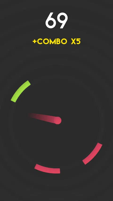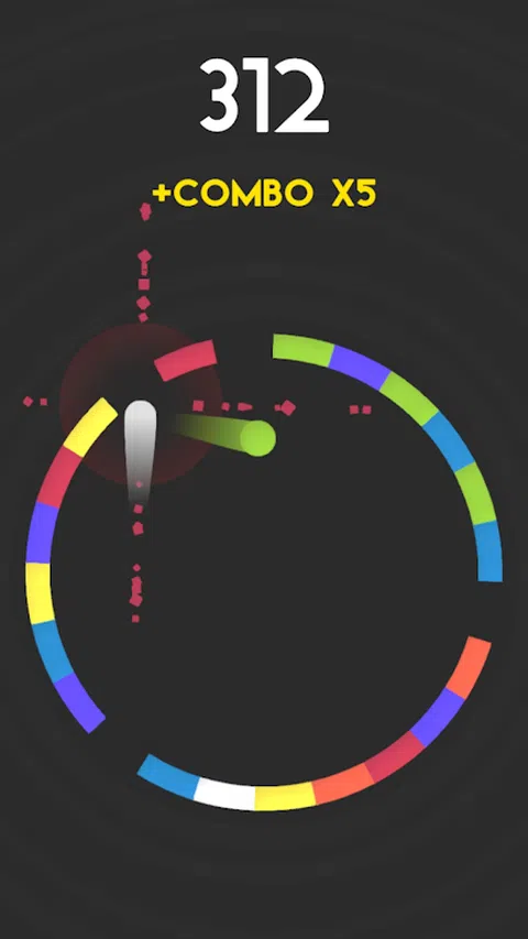向左或向右滑动以转动圆圈。尝试在圆圈上击中相同的颜色以将其打破。如果您继续匹配颜色,则获得连续命中的奖励积分