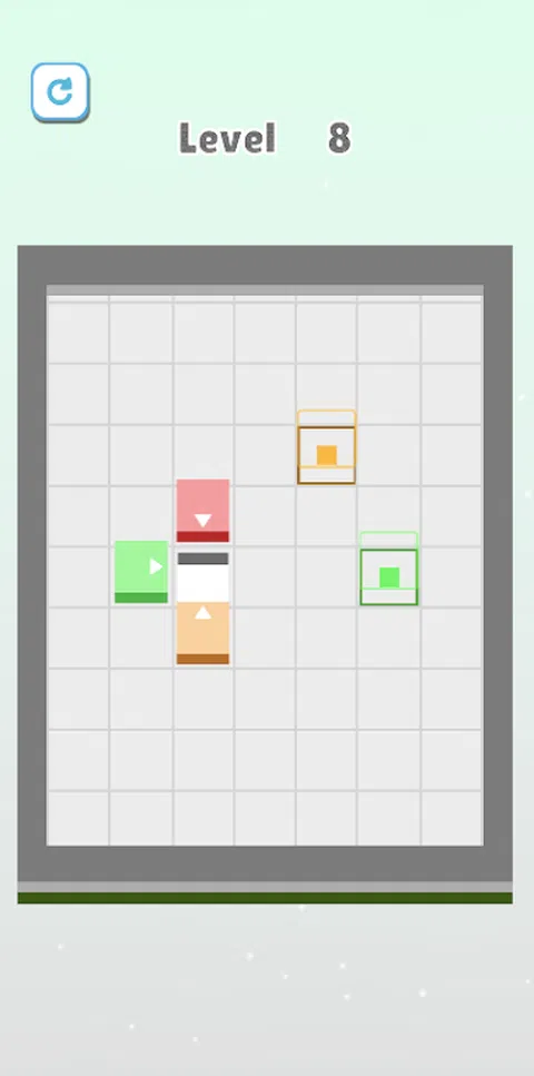 滑动以将方块移动到相同颜色的目标! 方块只会沿方块上箭头的方向移动! 将积木推开或将其放入孔中以达到目标