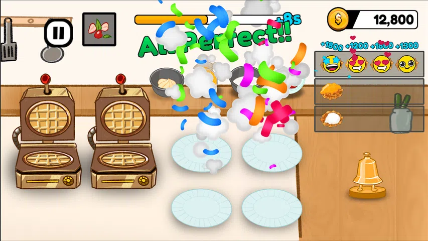 你准备好了吗?在规定的时间内制作尽可能多的华夫饼! 根据您的订单添加各种配料,制作美味的华夫饼。 如果你在正确的时间烤华夫饼,你可以做出“的华夫饼”。 【游戏方法】 1. 确认您的订单。 2. 将面团放入华夫饼机,烘烤华夫饼。 3. 将烤好的华夫饼放在盘子上。 4. 请根据您的订单放入各种浇头。 5. 当您的订单完成后,按铃