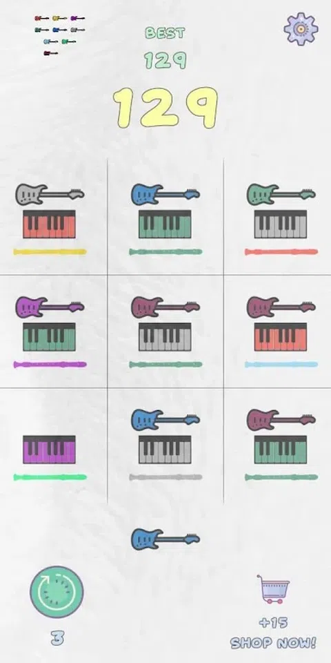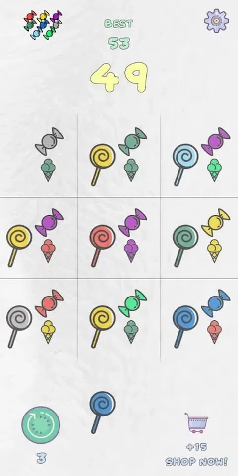 匹配三块相同颜色的棋子即可得分