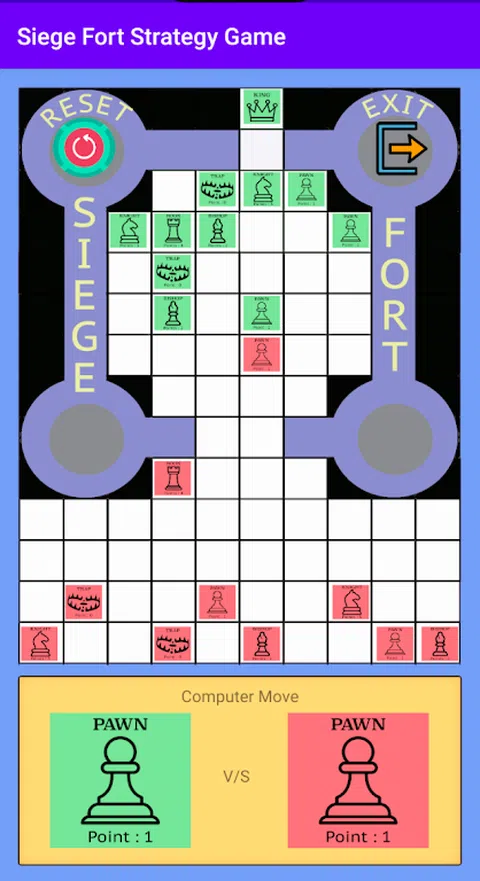 游戏有类似国际象棋的棋子。但是你只有5种棋子,每个棋子只有水平和垂直移动。在这里,每个棋子都有一个分数系统,根据该分数系统,当遇到对手的棋子时,这些棋子会从面板上移开。您可以玩保护国王(防御模式)或俘虏国王(进攻)。有关更多详细信息,请参阅游戏中的说明页面
