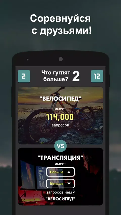 规则与游戏第一部分相同。 在此游戏中,您需要选择更频繁地进行两个搜索查询中的哪一个, 也就是说,猜猜它会进展更多,为每个正确答案获得积分。 游戏非常简单,虽然非常令人兴奋!这里有所有的东西,以便花时间有趣和幸福: - 更多100个流行搜索查询 - 随机组合任务 - 有关活动和竞争的信息推动通知 玩!猜测!拿到眼镜并赢