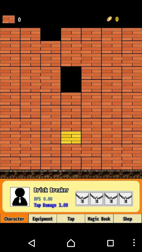 打破砖块是一款破坏砖块的游戏。 在游戏中你可以无止境的破坏砖块, 使用各种武器一大堆的砖块。 打倒第 5 个魔王砖块开始,就可以取得魔法药水,魔法药水可用来学习下列的魔法之书。 愤怒之书:增加 20% 点击伤害。 财富之书:增加 50 金色砖块金币。 时间之书:增加 1 秒与魔王砖块战斗时间。 节约之书:减少 2% 升级花费。 疾病之书:减少 2% 魔王砖块生命。 探索之书:增加 1% 金色砖块出现机率。 贪婪之书:增加 5% 金币。 机会之书:增加 0.5% 10倍金币机率。 谋杀之书:增加 15% 暴击伤害。 智慧之书:增加 10% 魔法药水取得数量。 打倒第 5 个魔王砖块后,会出现转生的按钮,可以随时重头开始。 是一款好玩的游戏。赞