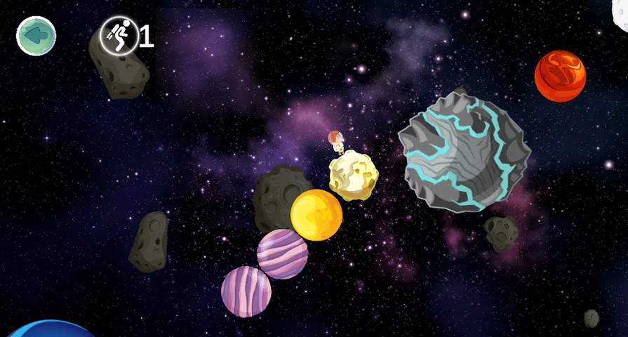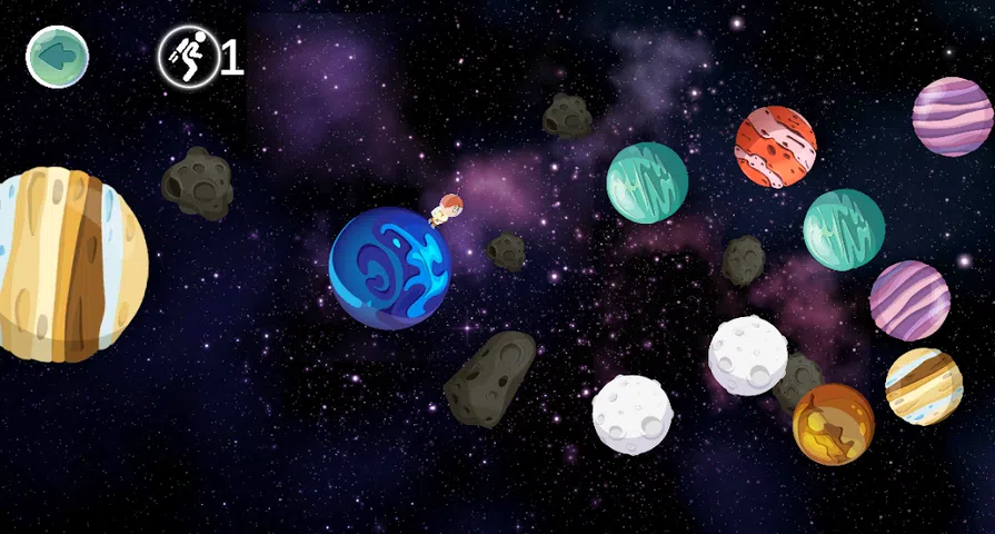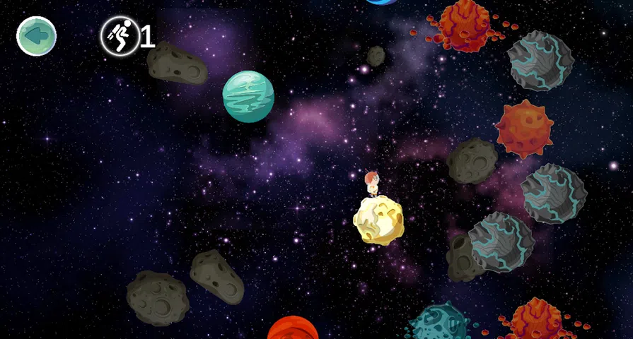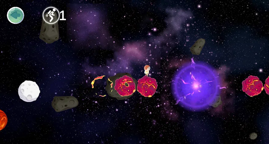 这个游戏简短而甜蜜。你引导男孩穿越银河系,在星星之间跳跃。 旅程充满乐趣和冒险,只需避开小行星、太空风暴、腐烂的岩石和炸弹! 但是不要害怕