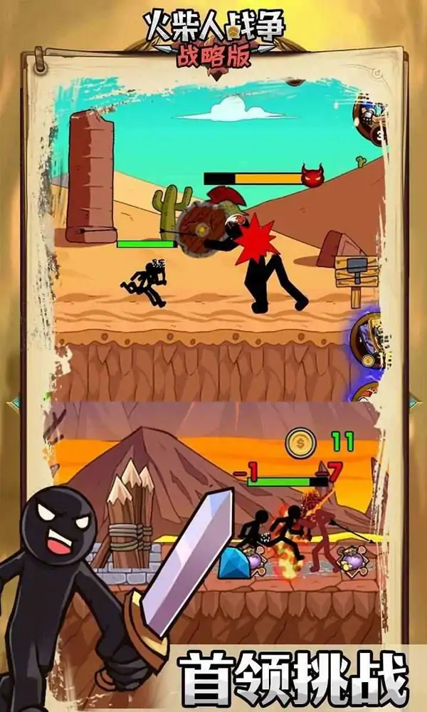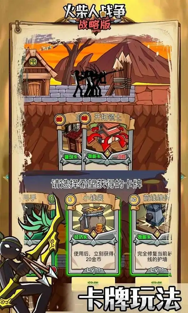 火柴人战争战略版 一款风格独特的火柴人卡牌塔防游戏,玩家将扮演一个火柴人部落的领导者,你要保护自己的子民和村庄免遭敌人的袭击,你的最大目标就是建立最大的“火柴人帝国”,让后世的火柴人永远都在称赞你。游戏玩法以卡牌防守为主,玩家可以自己购买各种卡牌,召唤各种火柴人去抵御敌人,保护你的部落。