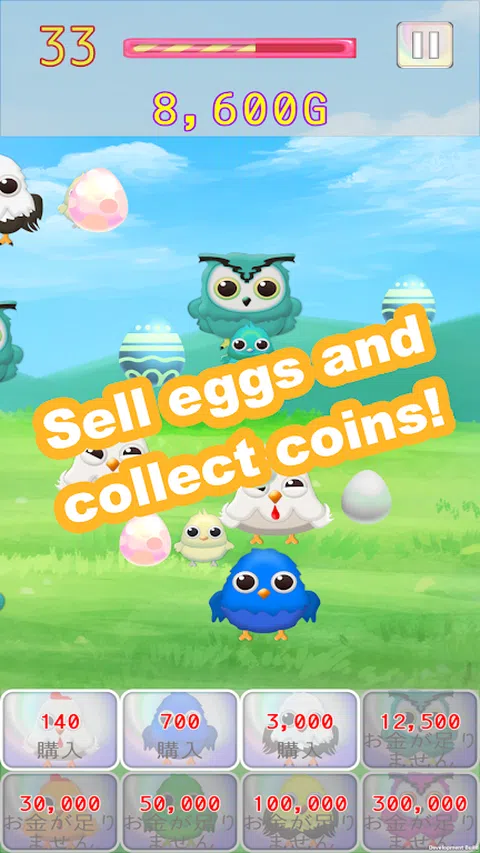 在时间结束之前获得更多硬币以提高您的分数! -轻拍鸟几次下蛋。 -点击一个鸡蛋卖掉它。 - 让鸡蛋单独生下小鸡! - 轻拍小鸡几次,使其成为亲鸟! - 出售稀有鸡蛋以获得更昂贵的鸟