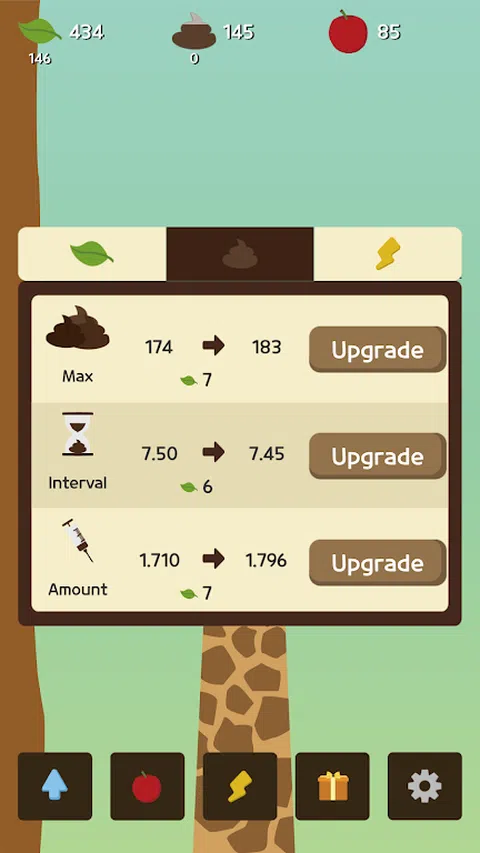 天上有一棵大树, 而“长颈鹿”需要吃叶子才能生长! 我们的长颈鹿能长多高? 长颈鹿成长点击游戏,长颈鹿