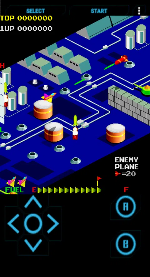 游戏的目标是在不被击落或燃料耗尽的情况下击中尽可能多的目标—矛盾的是,燃料可以通过炸毁燃料桶来补充。 有两个堡垒要飞过,它们之间有一个外太空部分。在第二个堡垒的尽头是 ZXN 机器人形式的老板。 玩家的船投射阴影以指示其高度。还显示了一个高度计;在太空中,飞船没有任何东西可以投下阴影。每个堡垒入口和出口的墙壁都有开口,船只必须处于合适的高度才能通过。每个堡垒内都有额外的墙壁,船的阴影和高度计有助于成功飞越
