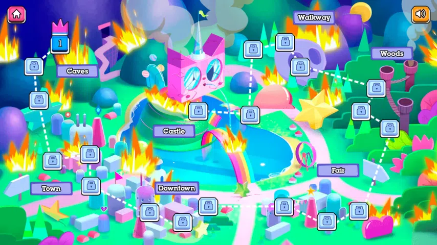 这个游戏让你控制 UniKitty 和她的朋友们。你必须在这片土地上旅行,试图驱逐末日领主,解决王国的问题,并在旅途中让公民们振作起来! 在游戏过程中,你可以在 Unikitty 和她的朋友之间切换,扮演 Puppycorn、Hawkodile 和 Dr Fox。每个角色都有独特的技能,kitty本身就拥有特殊的二段跳能力,而Puppycorn则可以跑得快、跳得远,还有凶猛的咬断能力! 霍克迪尔可以猛击几乎任何东西,而福克斯博士则可以扔实验室瓶子。 王国是一个美丽而和平的地方,直到有一天,许多恶棍占领了它并制造了混乱。现在轮到独角猫来拯救王国了!冒险从洞穴开始,但在整个关卡中,你还将到达城镇、市中心、集市、树林、步道,最后到达城堡。共有二十个有趣的关卡,准备好享受欢乐时光吧!尝试消灭所有恶棍并找到所有需要拯救的公民。收集途中发现的所有闪光物质。如果您收集的数量足以填满屏幕左上角的栏。你的生命是有限的,所以尽量不要浪费它们。 玩这个游戏玩得很开心