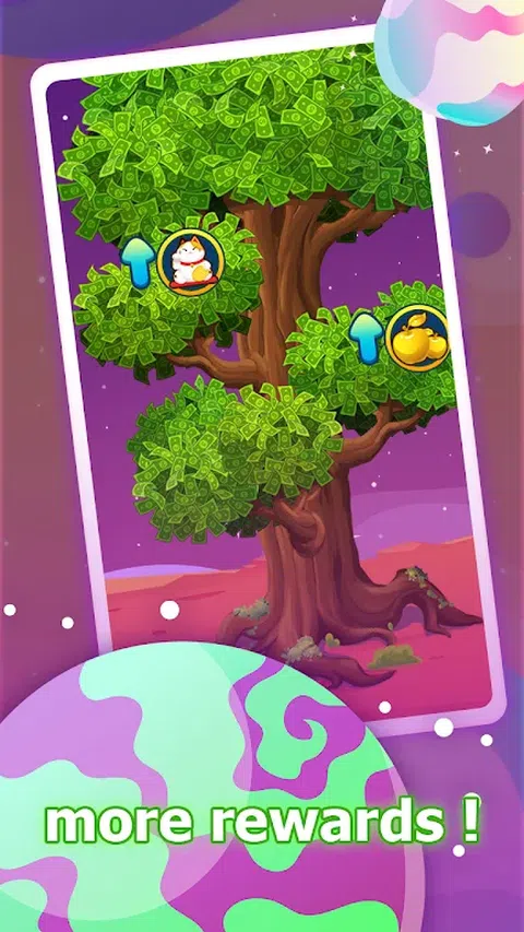 接受来自宇宙自然的反馈。 摇钱树让你享受数钱的乐趣。 树的不断生长让你成为超级赚钱的人,每天都能收获不菲的财富! 当树长到一定阶段,就会结出丰富的果实,这些果实可以给你带来额外的好处! 当您遇到瓶颈期时,您需要发现如何让大自然帮助您! 你的目标只有一个,让树木快速生长,收获果实,享受大自然的回报