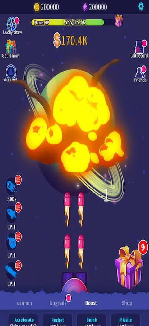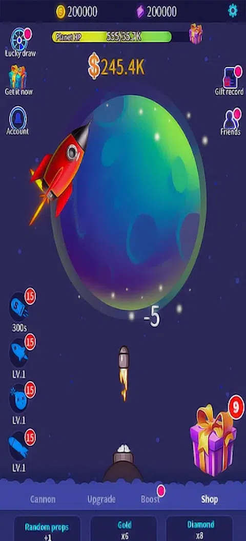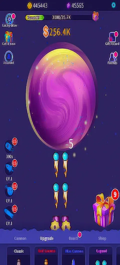 小星球照片强大的火炮不断开火,直到星球被摧毁并获得小星球视频资源。各类攻击小行星武器,无限火力,感受翻滚世界道具的威力,以获取其他星球的资源。 行星攻击行星的形状不同,让您体验更多不同的太空小行星。从地面飞到太空只用了几十年。进入太空后,游戏简单有趣,拿来玩,休闲必备