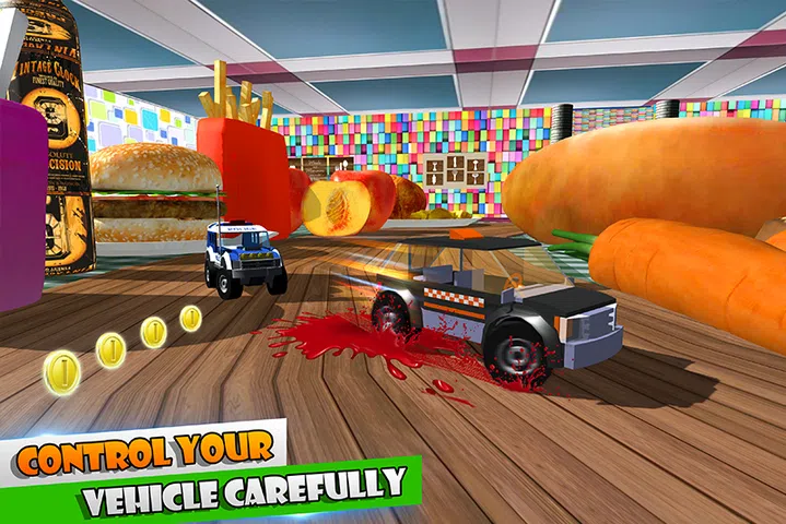 玩具汽车表粉碎机模拟了轰动的战斗,赛车,粉碎,斜坡特技,迷你玩具车在厨房食物桌上的游戏。 这个无尽的乐趣Top Table Racing适合所有年龄段的玩具车游戏爱好者。驾驶你的头脑吹迷你玩具车,如怪物卡车,警车,消防员面包车,吉普车,救护车,犁车,起重机,迷你车,最新控制你的口味。 ~ ★最新的驾驶控制 享受最新的迷你玩具车控制,您可以使用一个标签更改。 •倾斜模式。 •触摸控制模式。 以两种有趣的方式驾驶玩具车。 •自动驾驶模式。 •自定义驾驶模式。 ★迷人的赛车和粉碎 •与厨房桌子上的竞争对手比赛。 •将竞争对手的汽车从厨房食物台上碾碎。 •与从餐桌上丢弃饼干的竞争对手玩具车粉碎战斗。 •在赛车期间注意障碍物也会从食物桌上掉下目标物。 ★独特的厨房任务 •从表格中查找和删除突出显示的目标,例如香蕉板等。 •通过将食物放在盘子里吃午餐来为女孩服务。 •从餐桌上灭火。 •放下午餐盘附近的蟑螂。 ★奖金水平 在每三个级别之后,您将找到奖励级别。收集不同尺度的硬币,如25,50,100点。如果你达到了目标,那么你将获得双电池奖励来驾驶玩具车桌上粉碎机游戏的下一级迷你玩具车。 ★升级你的玩具车 您选择的硬币越多,您就可以在Toy Car Table Smasher游戏中获得更多分数,并且您可以在玩桌面赛车游戏时解锁您需求的最新玩具车。 ★玩具车表粉碎机的生存技巧 要享受无尽的迷你车驾驶,拿起电池对象来保留Toy Car Table Smasher游戏。准备好的指示也要遵循箭头方向。小心番茄酱分离器将滑动你的迷你车。不要让你的玩具车从桌子上掉下来,否则你将失去桌面游戏