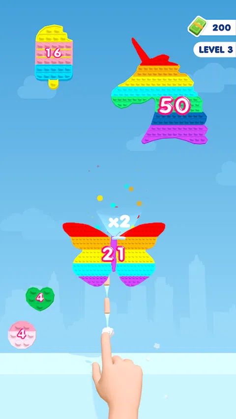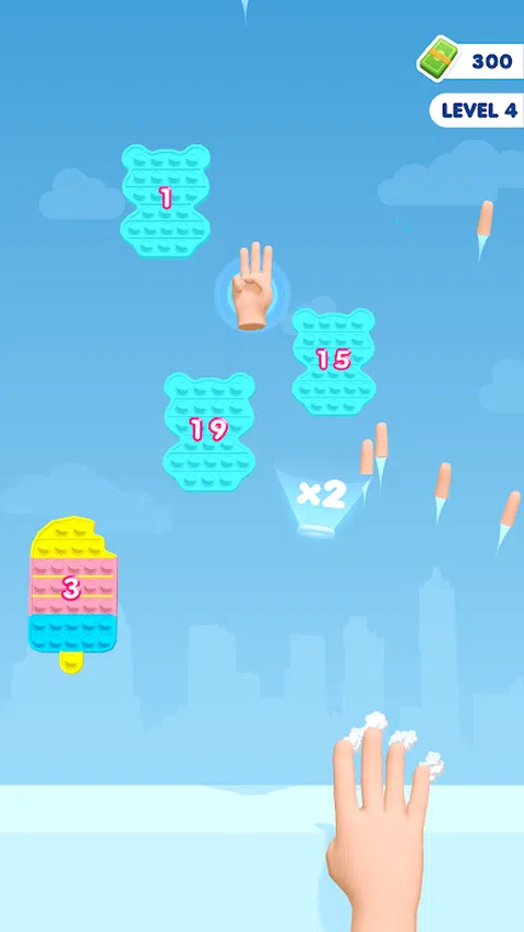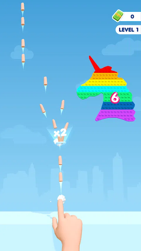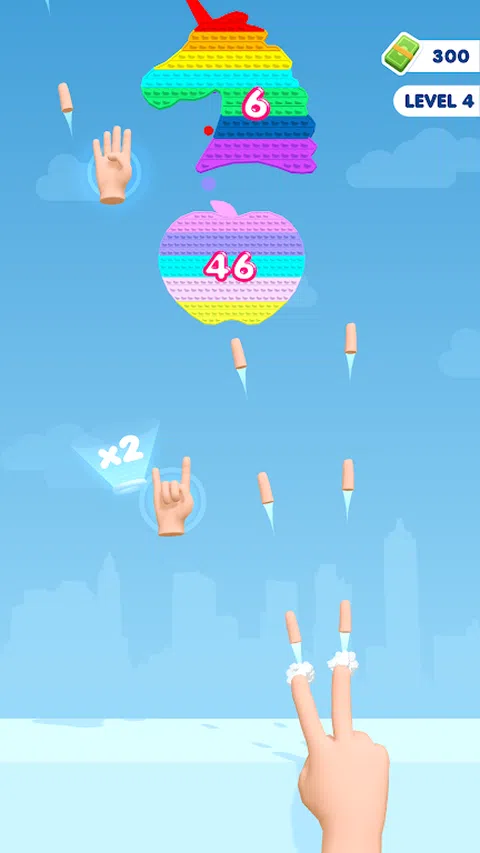 左右移动你的手,在落下的 Pop It 上射击手指! 你有足够的火力来分裂他们并摧毁他们吗? 在这个真棒游戏中试试你的手指射击技巧