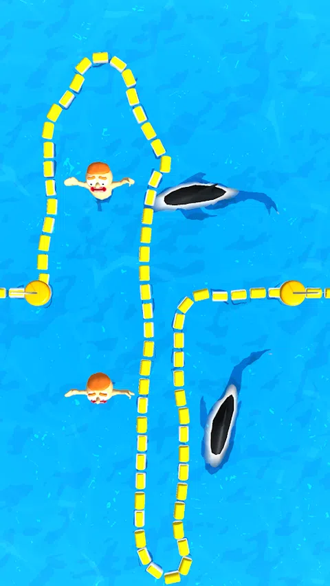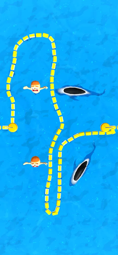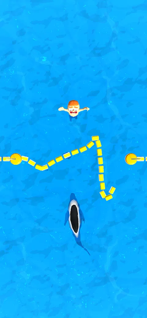 男孩有危险!我们必须救他! 在画中画一条线,将你与鲨鱼分开。尝试从鲨鱼手中救出男孩