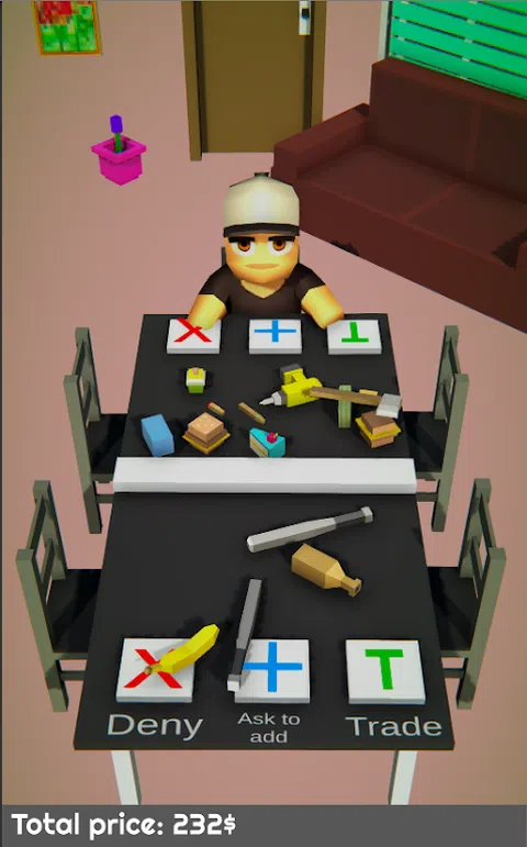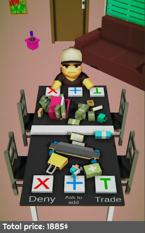 真正的 3d 交易大师! 这是一款令人上瘾的模拟游戏,您可以在其中交易许多不同的物品,而您的任务就是从中致富! 1)从您的库存中拖动一个项目开始交易,或在对手开始时放置一个项目! 3)如果您想拒绝交易,只需点击交叉按钮拒绝交易。 4)使用加号按钮从对手那里获得更多物品