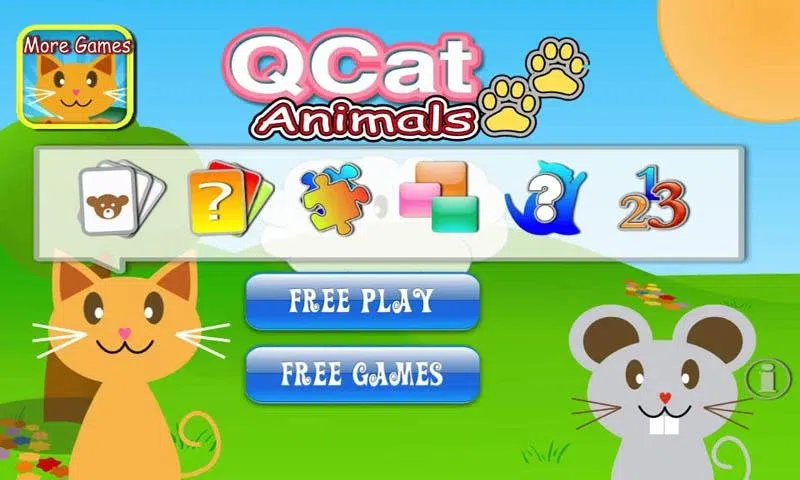 QCat - 8合1游戏:动物 这是一个互动游戏 它包括8个认识动物的游戏。 *特点* - 8种不同的游戏,教授记忆、形状、名称、计数、数字、图形匹配、大小和谜题。 - 可爱的动画QCat在用户玩游戏的同时为用户提供帮助。 - 大量动物名称录音供用户发音。 - 互动动画奖励!用户将获得多彩的糖果和水果淋浴 赢得比赛后的奖励。 - 针对玩家的多级别游戏,每次都会不同。 - 知道动物的英文名称。 - 此应用程序适用于平板电脑和手机 *游戏介绍* 1.动物卡牌匹配。 匹配成对的动物,带走QCat。(级别:3X2、4X3、5X4) 2.动物记忆卡训练。 匹配隐藏在卡片后面的成对动物。(级别:3X2、4X3、5X4) 3.计数。 数数动物。训练数字和计数。 4.拼图。 多彩拼图。识别形状很容易。 5.动物名称识别。 QCat喜欢以动物的名字命名!将其带到QCat,以了解动物的名称。 6.形状和尺寸 教用户识别哪个是最大的或最小的。 7. 学习英语 教用户了解动物名称和数字的英语 8.Catch QMi(鼠) 有时,Qmi(老鼠,调皮的老鼠)会出现在屏幕上以打断QCat的工作,只需抓住QMi,QCat就会给您一些奖励