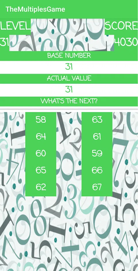 在每个级别中,您需要完成基数倍数的简单序列(基本上是每次基数的总和).但是您需要在时间结束之前完成。 一步一步地,游戏变得越来越困难.你能达到什么分数? 挑战你的朋友