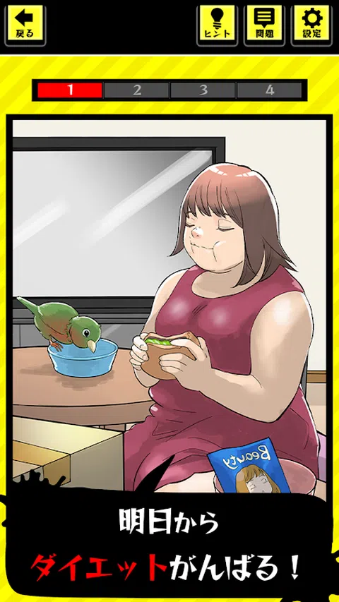 也许我很胖? 瘦下来就美了 我不许你多说! 我会以一种很好的方式减肥! 那些认为…的人的大失败故事 ● 激进的饮食故事 ・ 以时令食物为食 ・一日一餐的饮食 ・婚礼饮食 ・ 用流行的食物饮食 ● 怎么玩 ・阅读我正在做的饮食方法 ・ 仔细看看我的情况 ·就是这个!点击你想到的地方! ・如果你正确回答所有问题,你就会知道如何节食